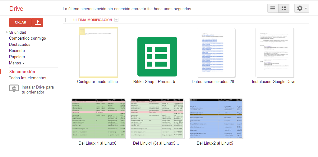 4.- Una vez habilitado, tendremos acceso a nuestros documentos en la pestaña de “sin conexión”, sin necesidad de estar conectados. Por último, estos documentos se sincronizan automáticamente con Drive cada vez que tengamos acceso a internet.